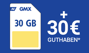 Guthaben: Um das 30 € Guthaben zu erhalten, achten Sie bitte darauf, dass Sie sich im Bestellprozess mit den Zugangsdaten Ihres GMX Premium-Postfachs einloggen bzw. diese E-Mail-Adresse im Bestellformular angeben. Das 30 € Guthaben wird Ihnen von Ihrem Mobilfunkanbieter ab dem 4. Monat verrechnet. Bei telefonischer Bestellung erwähnen Sie bitte, dass Sie das zahlungspflichtige GMX Premium-Postfach nutzen, damit Ihnen das 30 € Guthaben gutgeschrieben werden kann. Das Guthaben gilt nur für den Abschluss eines Neuvertrages, nicht bei Tarifwechsel eines bestehenden Vertrages.