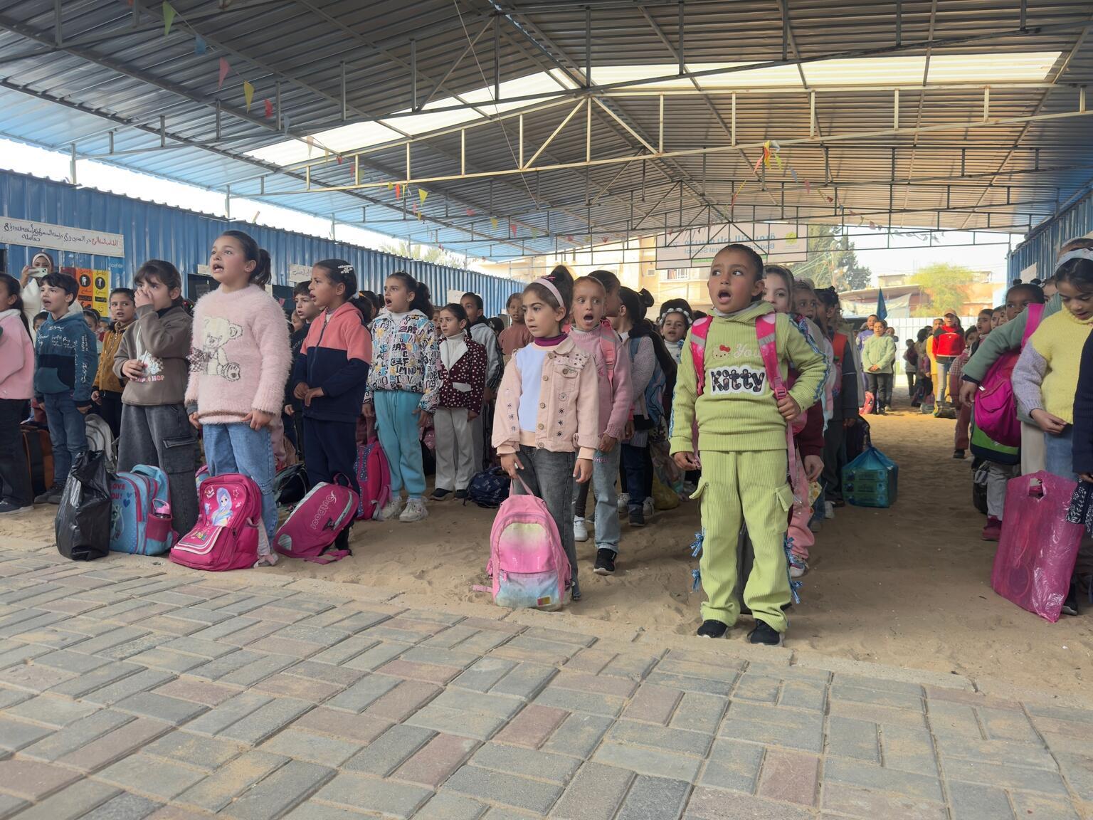 Sie werden zusammen mit dem palästinensischen Bildungsministerium und humanitären Organisationen eingerichtet. Andere Kinder werden an Schulen des UN-Hilfswerks für palästinensische Flüchtlinge im Nahen Osten (UNRWA) betreut.
